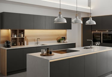 Diseño y fabricación de muebles de melamina y MDF para cocinas, baños, dormitorios, oficinas, etc.